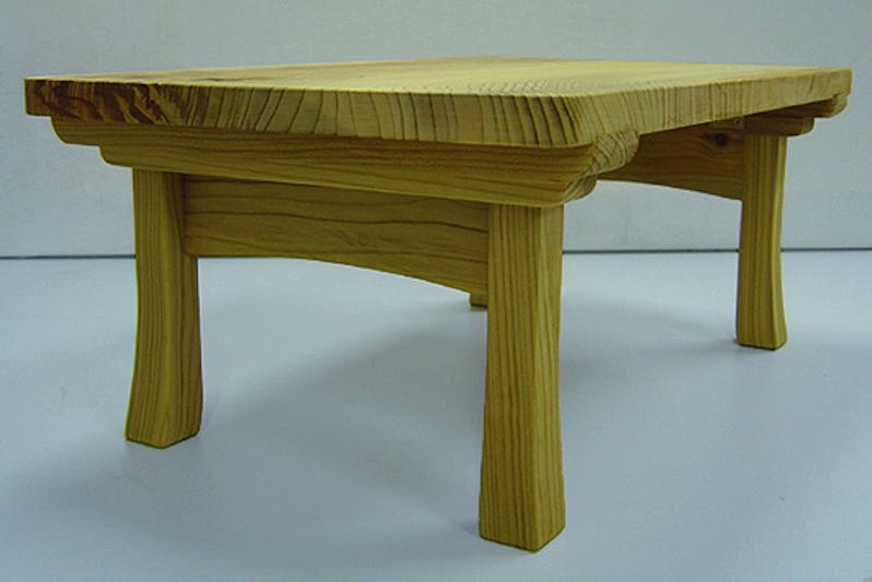 Der traditionell japanische Tisch ist schwarz lackiert,