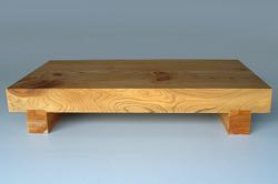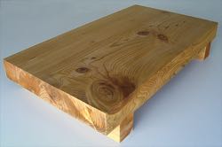mit Füßen aus Birnbaum, die halbrund in die Platte