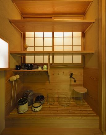 niert mit Holz, Bambus und anderen Naturmaterialien. Es kommen neuartige Bauelemente zum Einsatz und traditionelle werden umfunktioniert und modern gestaltet. Natürlich immer im Hinblickauf das Praktizieren des Teewegs, der